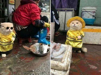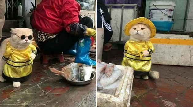 Вьетнамский кот стал самым очаровательным продавцом рыбы