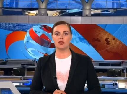 В эфире «Первого канала» непредвиденное – за спиной Екатерины Андреевой появился посторонний