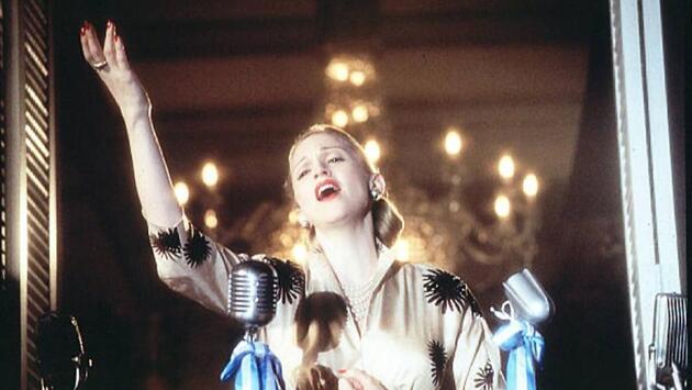 Вершина актерской карьеры Мадонны. Экранизация мюзикла Эндрю Ллойда Уэббера стала настоящим триумфом певицы. Она сыграла самую знаменитую (и по сей день) женщину Аргентины. Обаятельная блондинка Эва Перон, первая леди страны и соратница своего мужа Хуана Перона, еще при жизни стала легендой. Ее потрясающему взлету и всенародной любви консервативного населения не помешали даже такие факты, как рождение вне брака и артистическая юность. И Мадонна действительно справилась с поставленной задачей. Она смогла создать яркий образ женственной силы и жертвенности. Ее усилия оценили и профессионалы. За эту работу Мадонна получила «Золотой глобус».
