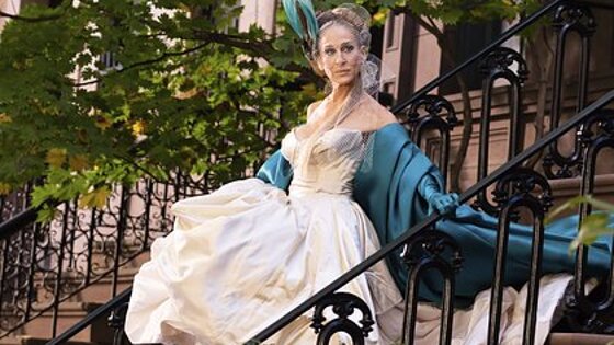 Знаменитость вышла на площадку в свадебном платье 14-летней давности, в котором она уже снималась в прошлой части истории. В первом фильме телезвезда предстала перед зрителями в указанной вещи в сочетании с фатой и золотыми туфлями. При этом в будущем эпизоде Паркер появится в том же платье с бирюзовыми накидкой, перчатками и остроносыми босоножками.