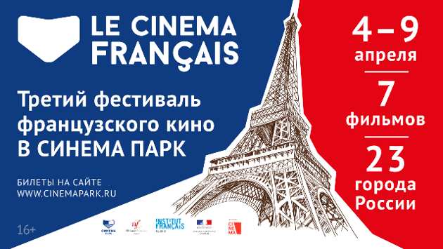 С 4 по 9 апреля в кинотеатрах сети СИНЕМА ПАРК состоится третий фестиваль «Le cinéma français», в формате которого пройдут показы лучших современных фильмов французского кинематографа в 23 города России. В программе – 7 фильмов: дерзкая комедия Дэни Буна «Возьми меня штурмом», тонкий триллер с несравненной Изабель Юппер «Она» мастера жанра Пола Верховена и терпкая драма Ксавье Долана «Это всего лишь конец света». Также на большом экране кинотеатров СИНЕМА ПАРК предстанут: философская картина «В лесах Сибири» режиссёра Сэфи Неббу, злободневная реплика Фредерика Бегбедера – «Идеаль», эмоциональная мелодрама «Любовь и страсть. Далида», поставленная Лизой Азуэлос, и смелая комедия «Если б я была мужчиной» от Одри Даны, которая и исполнила главную роль. Фильмы фестиваля будут представлены следующих городах: Москва – Кинотеатр СИНЕМА ПАРК, ул. Автозаводская, 18, ТРЦ «Ривьера» Санкт-Петербург – Кинотеатр СИНЕМА ПАРК, пр. Космонавтов, 14, ТРЦ «Радуга» Белгород – Кинотеатр СИНЕМА ПАРК, пос. Дубовое, ул. Щорса, 64, МТРК «Сити-молл Белгородский» Волгоград – Кинотеатр СИНЕМА ПАРК, пр. им В.И Ленина, 54б ТРК «Европа Сити-молл» Вологда – Кинотеатр СИНЕМА ПАРК, Пошехонское ш., 22, ТРЦ «Мармелад» Воронеж – Кинотеатр СИНЕМА ПАРК, ул. Кольцовская, 35, «Галерея Чижова» Екатеринбург – Кинотеатр СИНЕМА ПАРК, ул.Малышева, 5, ТРЦ «Алатырь», 4 этаж Ижевск – Кинотеатр СИНЕМА ПАРК, ул. Петрова, 29, 3 этаж Калининград – Кинотеатр СИНЕМА ПАРК, ул. профессора Баранова, 40, ТРК «Европа» Ковров – Кинотеатр СИНЕМА ПАРК, ул. Лопатина, 7, ТЦ «Ковров Молл» Красноярск – Кинотеатр СИНЕМА ПАРК, ул. Дубровинского, 1и, ТРЦ Галерея «Енисей» Нижний Новгород – Кинотеатр СИНЕМА ПАРК, ул. Родионова, 187, ТРЦ «Фантастика» Новосибирск – Кинотеатр СИНЕМА ПАРК, Красный проспект, 101 Набережные Челны – Кинотеатр СИНЕМА ПАРК, пр. Мира, д.3, ТРЦ «Торговый квартал» Пермь – Кинотеатр СИНЕМА ПАРК, ул. Революции, 17 Саратов – Кинотеатр СИНЕМА ПАРК, ул. Зарубина, 167 Ставрополь – Кинотеатр СИНЕМА ПАРК, ул. Доваторцев, д. 75А, ТРЦ «Коsмос» Сургут – Кинотеатр СИНЕМА ПАРК, Югорский тракт, 38, ТРЦ «Сургут Сити Молл» Тула – Кинотеатр СИНЕМА ПАРК, ул. Пролетарская, 2 Тюмень – Кинотеатр СИНЕМА ПАРК, ул. Максима Горького, д. 70. ТРК «Гудвин»
