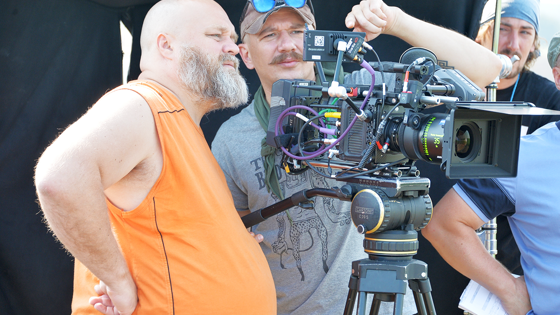В воскресенье, 27 августа, в стране отмечается День российского кино. Накануне «ОГ» побывала на съёмочной площадке будущего фильма екатеринбургского режиссёра Алексея Федорченко, который приступил к съёмкам картины «Последняя милая Болгария». Замысел этого фильма Федорченко вынашивал двадцать лет. Точнее, как рассказывает сам режиссёр, он прочитал и понял, что это киноистория. В основу положена автобиографическая повесть Михаила Зощенко «Перед восходом солнца». Вместе со своим постоянным сценаристом Лидией Канашовой режиссёр целый год писал сценарий. Изначально фильм назывался «Ключи счастья», но сейчас рабочее название поменялось на «Последняя милая Болгария». Вообще «Болгария» – это сорт яблок, который выращивает главный герой, мичуринец, в исполнении актёра Коляда-театра Ильи Белова. Картина охватывает довольно большой период – с 1900 по 1943 год. Справа налево: режиссёр Алексей Федорченко, оператор Артём Анисимов и актёр Илья Белов смотрят на отснятый эпизод. Для общения между собой вся съёмочная группа использует рации. Фото: Павел Ворожцов Стоит отметить, что в этой картине режиссёр пробует много нового. Впервые он обратился к жанру мистического детектива, впервые будет использовать только уральских артистов (главные роли у Ильи Белова и Константина Итунина - оба из «Коляда-театра») и впервые всё снимет в Свердловской области. Исполнитель главной роли Илья Белов (справа) и Алексей Федорченко. Фото: Павел Ворожцов Несколько дней назад Федорченко и его рабочая группа приступили к съёмкам. Первый день прошёл на стадионе «Уральский трубник» в Первоуральске. Его антураж как нельзя кстати подошёл для Алма-Атинского рынка 1943 года. Это, к слову, была самая массовая сцена фильма – в ней приняли участие почти 60 человек. Для съёмок в Первоуральск специально привезли 600 килограммов яблок и полторы тонны картофеля. Актёр Илья Белов с «реквизитом» для фильма. Выкапывать целые грядки морковок в месте съёмок строго запретили, однако съесть одну-две штуки мог каждый. Фото: Павел Ворожцов На следующий день – вновь Казахстан. Правда, вблизи посёлка Октябрьский, на настоящем морковном поле. Детали сюжета Федорченко держит в тайне. Он очень не любит говорить о ещё не снятом кино, и вообще до этого журналистов на съёмки не пускал. «Сейчас сделал исключение, посмотрим, что будет», – улыбается режиссёр. Реквизит для съёмок. Фото: Павел Ворожцов Несколько машин со съёмочным оборудованием и людьми плавно вкатываются на поле по грунтовой дороге, поднимая клубы пыли и нарушая тишину мест. Сразу, как в муравейнике, каждый начинает заниматься своим делом. Кто-то готовит камеры, устанавливает палатки, разматывает провода. Кино – это командная работа. Алексей Федорченко в день съёмок на редкость сосредоточен. Он пристально наблюдает за каждой деталью съёмочного процесса. Кадр два, дубль один. Ну какие съёмки фильма без главного атрибута кино – хлопушки. Фото: Павел Ворожцов Оператор Артём Анисимов смотрит в камеру. – В кадре должны быть выкопанные морковные грядки, а за ними те, на которых ещё растут овощи, – поясняет он. – Морковь в полях ещё не начали убирать, значит, нам самим нужно эти грядки создать. Берём лопаты, мешки, будем носить землю. А сверху положим ботву, а необходимые морковки вновь воткнём в землю. Процесс окрашивание морковок. Фото