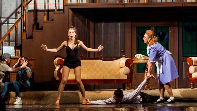 «Шум за сценой» - самая известная и популярная комедия Майкла Фрейна, которая с огромным успехом идет по всему миру на театральных подмостках. В этой искрометной комедии драматург помещает «театр в театр», сплетая судьбы актеров и их персонажей, доводя действие спектакля до комического абсурда. Иронизируя над театральным бытом, артисты со смехом вспоминают собственные гастрольные «приключения», представляя зрителям неизвестную сторону своей профессии, где не обходится без интриг, театральных страстей и, конечно же, зажигательной музыки и танцев.