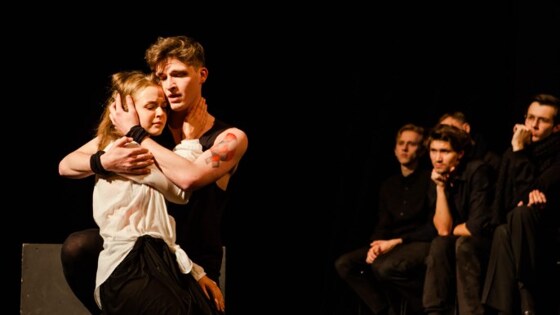В спектакле легендарного театрального педагога, непревзойдённого мастера Слова Валерия Галендеева совсем нет декораций. Его актёры ничем не прикрыты: ни светом, ни музыкой – они выходят на пустую площадку один на один, лицом к лицу со своим зрителем, и каждый раз доказывают своё право называться актёром – это и есть неизбежный экзамен Галендеева, хитрая ловушка мастера по сценической речи, свидетелем которой становится зритель.
