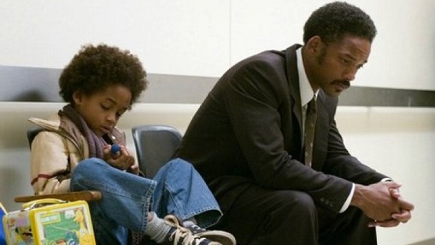 По сюжету, Крис Гарднер в одиночку воспитывает пятилетнего сына. Работая продавцом, он не может оплатить аренду квартиры, и спустя время их выселяют. Оказавшись на улице, отец понимает, что он не имеет права сдаваться, так как ему нужно заботиться о сыне. И тогда Крис устраивается стажером в брокерскую компанию, чтобы в дальнейшем получить должность специалиста. Однако выясняется, что шестимесячная стажировка не оплачивается. Главные роли в фильме исполнили Уилл Смит со своим сыном Джейденом.