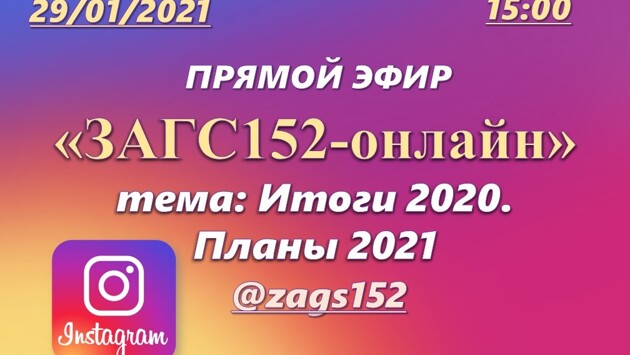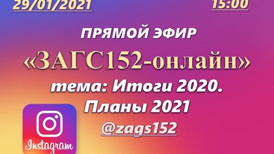 Официальный аккаунт Главного управления ЗАГС в Instagram: @zags152 (https://www.instagram.com/zags152).