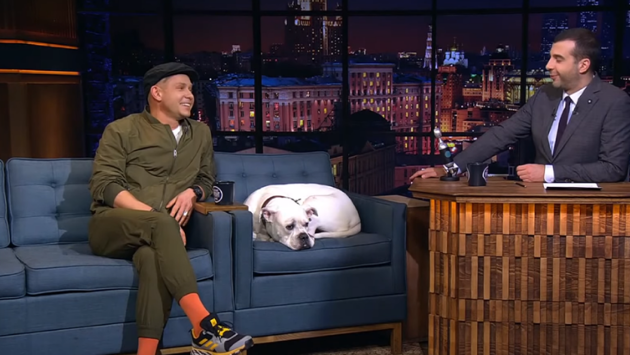 О своей мечте детства он поведал на шоу «Вечерний Ургант», придя в студию вместе с Белоснежкой – белым американским бульдогом, с которым он живет уже восемь лет.