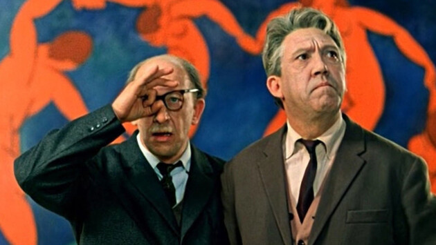 Если вам показалось, что в фильме вы увидели интерьер ГМИИ им. А.С. Пушкина, то вам не показалось – именно в Пушкинском музее снят кошмарный сон Мячикова, когда оживают всадники (копии статуй кондотьера Гаттамелаты и кондотьера Коллеони) и гонятся за ним на металлических конях. Лестницу музея снимали в здании журфака МГУ, а вот музейные залы с колоннами полностью создали в съемочном павильоне. Единственная «настоящая» картина в этом бутафорском музее – копия «Портрета молодого человека с кружевным воротником» Рембрандта, которую написал художник Борис Щербаков – именно эту картину решили похитить герои Никулина и Евстигнеева. Оригинал хранится в Эрмитаже. Все остальные шедевры, включая «Танец» Анри Матисса, на фоне которого стоят герои на первом фото, были написаны для фона. Еще один пункт в географии «Стариков-разбойников» – Трубниковский переулок, 19 в Москве, по этому адресу снимали сцену ограбления Мячикова.