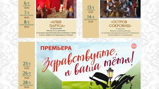 Рязанский музыкальный театр. Репертуар на Март 2021 года.