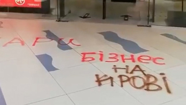 После погрома праворадикальные активисты оставили на полу магазина надписи «Спонсор сепаратистов», «Террористы», «Бизнес на крови».