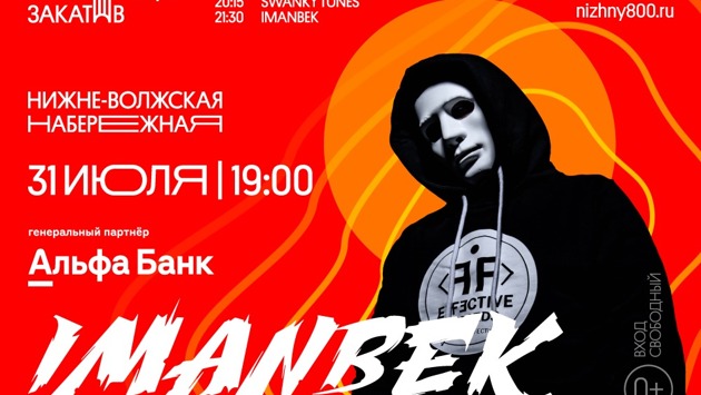 Иманбек выступит на нижегородском фестивале «Столица закатов» (0+) 31 июля, сообщает пресс-служба губернатора и правительства Нижегородской области.