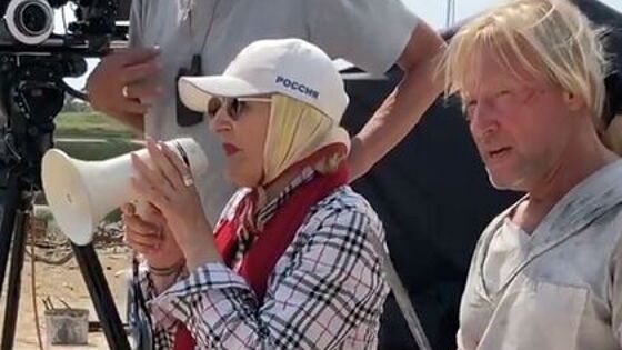В ролике заметно Дружинину с громкоговорителем. В него она торжественно объявила о завершении «сложного этапа» работы над картиной, а также поблагодарила съемочную группу. «Простите, если кого-то могла обидеть. Не держите на меня зла. Я вас всех очень люблю! Ура!» — заявила она, а вся команда ее поддержала.