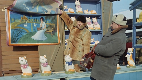 Фото: кадр из фильма режиссера Леонида Гайдая «Операция «Ы» и другие приключения Шурика» 1965 г. 8 августа - Всемирный день кошек. Праздник был учрежден 19 лет назад, в 2002 году, международной организацией по защите животных Animal Welfare. Котиков любят все, за ними невероятно интересно наблюдать. Сделать это можно, выбрав в коллекции онлайн-кинотеатра «Мосфильма» ленты с участием пушистых артистов. Талисман удачи Певцом котиков можно назвать легендарного советского комедиографа Леонида Гайдая, он уважал мурлык и снимал их почти во всех своих фильмах. Говорят, что Гайдай был суеверным человеком, но вот к черным котам относился благосклонно, не считал их предвестниками беды, а, напротив, любил и охотно брал в кадр. Режиссер верил, что черные коты приносят ему удачу. Впервые кошки появились в киноленте Гайдая «Деловые люди», снятой по рассказам О. Генри. В новелле «Родственные души» кошка мелькнула на заднем плане, попавшись под ноги грабителю, которого играл Юрий Никулин. А в новелле «Вождь краснокожих» хвостатая актриса в кадре продержалась дольше, это в нее бросал камни плохой мальчик Джонни, но, к счастью, не попал. Кошки бывают разные Фото: кадр из фильма режиссера Леонида Гайдая «Операция «Ы» и другие приключения Шурика» 1965 г. В картине «Операция «Ы» и другие приключения Шурика», тоже собранной из новелл, кошкам уделяется больше внимания. Так, одна из мурлык появляется вместе с собакой в эпизоде первой новеллы « Напарник» из трубы на стройке. В это время на экране главные герои Шурик и Федя активно выясняют между собой отношения. У кошки из этой новеллы нет определенной актерской задачи, она всего лишь оживляет кадр. В новелле «Наваждение» главный герой Шурик в исполнении Александра Демьяненко отвлекает внимание боксёра Рекса пойманной чёрной кошкой. И здесь пушистая актриса уже в образе – она недовольна ситуацией, агрессивна и способна постоять за себя. В третьей новелле, «Операции «Ы», зрители видят кошек искусственных, представляющих собой гипсовые копилки, такими изделиями торгует на рынке герой Георгия Вицина Трус. Искусственные кошки больше, чем фон, они – символ уюта, дома, которого лишены персонажи картины. Кошки – копилки становятся тренажером для Труса, он отрабатывает коронный «удар» на гипсовых мурлыках. Копилки-путешественницы Фото: кадр из фильма режиссера Леонида Гайдая «Операция «Ы» и другие приключения Шурика» 1965 г. Кстати, любопытна судьба этих статуэток. Кошки – копилки из «Операции «Ы» снялись еще в нескольких картинах. Одну из кошек можно наблюдать в фильме все того же Гайдая «Не может быть!», она украшает интерьер квартиры тридцатых годов, подчеркивая вызывающую пошлость обстановки, окружающую героев. Затем эта кошка-копилка переселяется в квартиру главного героя фильма «Ты - мне, я - тебе», режиссера Александра Серого, где среди антиквариата смотрится подделкой, фейком. Возможно, что столь говорящая деталь использована режиссером для характеристики главного героя – человека пустого и напыщенного. А спустя 10 лет гипсовая кошка, но уже с синим бантом, окажется на печке в доме Василия Кузякина – персонажа картины «Любовь и голуби». Сегодня одна кошечка из знаменитой коллекции хранится в музее «Мосфильма». Похождения Бегемота Фото: кадр из фильма режиссера Леонида Гайдая «Бриллиантовая рука» 1969 г. Вернемся 