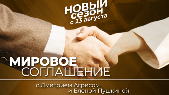 На телеканале «МИР» стартовал новый сезон правового шоу «Мировое соглашение». В каждой программе три истории – конфликты между родственниками, друзьями, бывшими возлюбленными. Ведущие Дмитрий Агрис и Елена Пушкина докажут, что даже в таких сложных вопросах, как определение отцовства, раздел имущества и возврат долгов, можно прийти к компромиссу.