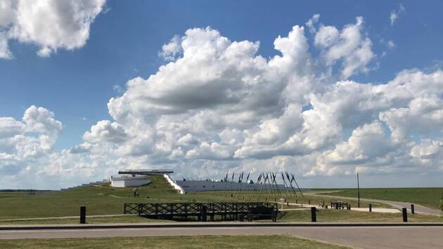 Перед громадой облаков, нависающих над территорией заповедника, невольно теряешься. Кажется, сама вечность хранит эту землю. Дорожка к построенному шесть лет назад музейному комплексу «Куликово поле» ведет мимо гигантских копий, упирающихся наконечниками в самое небо. Ветер доносит медовый запах степных трав. Картина, предстающая перед глазами, не подавляет, напротив, поле принимает ступившего на него: ты, мол, часть далекой истории. Здание музея тоже внушительно. То ли белоснежный курган, то ли машина времени, доставляющая посетителей в прошлое.