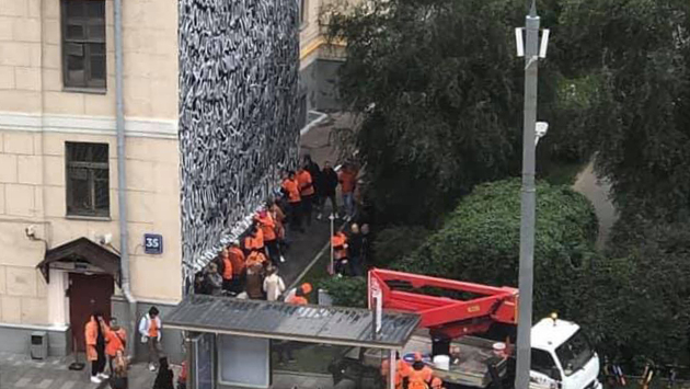 Рабочие в Москве начали закрашивать граффити с именами пропавших детей на фасаде одного из домов на Большой Якиманке. Фотографию с десятком коммунальщиков опубликовала местная жительница в районной Facebook-группе «Соседи. Замоскворечье, Якиманка, Центр» в четверг, 16 сентября.