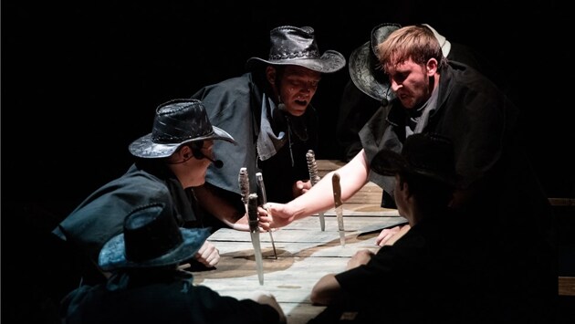 "По мотивам рок-оперы Алексея Рыбникова "Звезда и смерть и Хоакина Мурьеты" - так деликатно написали на афише создатели спектакля режиссер Валерий Лысенко и хореограф Оксана Холева. И права соблюли, и свободу от оригинала задекларировали. История этого сочинения, хоть и не так кровава, как история реального латиноса с разбойничьими замашками и неземной любовью к жене, но тоже довольно-таки событийна. Несмотря на то, что поэтический источник принадлежит чилийскому поэту Пабло Неруде, коммунисту и большому другу СССР, сюжет, романтизирующий мексиканского бандита (Неруда превратил своего героя в чилийца), разбойничавшего в Калифорнии во времена "золотой лихорадки" и убитого рейнджерами, в 70-е годы в нашей стране воспринимался, мягко говоря, странно. Тем не менее, прорвав цензурную блокаду, рок-опера Алексея Рыбникова на русский текст Павла Грушко в постановке Марка Захарова стала хитом театра имени Ленинского комсомола. Лет 10 назад появилась новая версия "Хоакина", где автором текста стал Юлий Ким, а сам Хоакин обрел свою первичную национальную идентичность – мексиканец. Процесс преобразования рок-оперы проходил не бесконфликтно – не так уж часто при живом авторе либретто его меняют на другого. Но факт есть факт: новый "Хоакин", отныне мексиканец, поменяв жену Тересу на жену Росситу, отправился покорять российскую сцену. И вот – Калининградский вариант "по мотивам". И надо сказать, что мотивы вполне удались. Фото: фестиваль "Видеть музыку" Скромная сценография, лаконичные, если не сказать бедные костюмы – в программке художник даже не указан, вероятно, его роль взял на себя режиссер – спектакль берет не картинкой, а звучанием и отличным актерским составом. На сцене – живая рок-группа, играющая с истинным драйвом, бешеной энергетикой и тем нервом, который необходим в этой стилистике. В градусе эмоции не уступают и артисты – Андрей Круглов (Хоакин), Михаил Петров (Хесус), Илья Рихтер (Мануэль). Но лидерами в этом спектакле, конечно, стали Николай Перлухин в роли Смерти и Юлия Ткачева в роли Росситы. И несмотря на то, что спектакль оказался весьма уязвимым по звуку – не было нужного баланса между инструменталом и вокалом, обилие микширования иногда превращало звук в неуправляемый поток, вследствие чего терялся текст – досадные издержки исполнения спектакля на чужой площадке – тем не менее авторам и артистам удалось воссоздать на сцене атмосферу, в которой бунтарство, протест, безбашенное бесстрашие, безумный авантюризм соединились с такой же безмерной и бездонной любовью и нежностью. Возможно, именно в этом секрет легендарной харизмы Хоакина Мурьеты – такие страсти не доступны современному прагматику, а ведь так хочется иногда сбросить с себя оковы разума и осторожности и ощутить вкус жизни, опасно граничащей со смертью. Фото: фестиваль "Видеть музыку" Спектакль решен в жанре рок-альбома. Он начинается с большой хореографической увертюры, настолько долгой, что кажется, будто мы пришли на танцевальное представление. Разговорных диалогов очень мало – и это нормально для жанра рок-альбома, но увы, недостаточно для спектакля. Зрители, которым сюжет "Хоакина" неизвестен, вовек не разобраться, что здесь происходит. И даже тем, кто его помнит, приходится пробираться сквозь дебри сюжетной невнятицы. В конце концов начинаешь воспринимать 