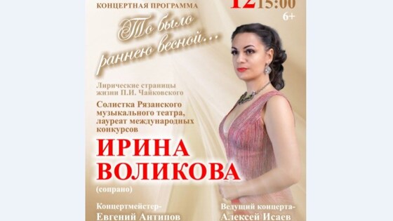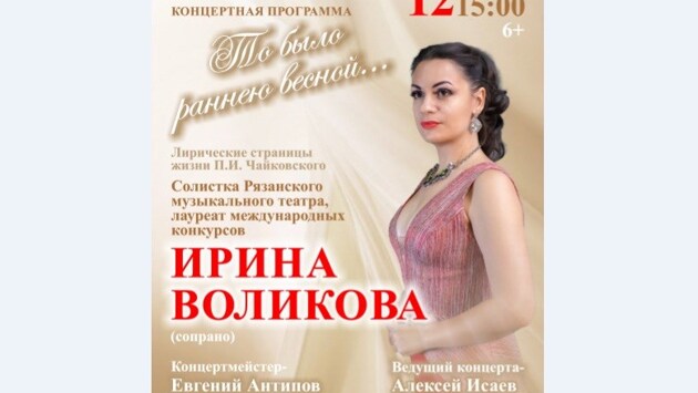 12 декабря в Рязанском государственном областном художественном музее имени И.П. Пожалостина состоится концерт лауреата всероссийских и международных конкурсов, солистки Рязанского музыкального театра Ирины Воликовой. Программа "То было раннею весной…" будет посвящена лирическим страницам жизни П.И. Чайковского. Наиболее яркий след в судьбе и творчестве Чайковского оставила французская оперная певица Дезире Арто. Она имела ослепительный успех, слушатели по всему миру были потрясены её нежным и страстным голосом. Чайковский был влюблён в известную красавицу, делал предложение и даже получил согласие. Но однажды совершенно случайно узнал, что его невеста вышла замуж за другого. Несмотря на всю пережитую боль, Пётр Ильич до конца дней тепло относился к Арто и называл её великой и гениальной актрисой. Нередко романсы Чайковского называют лирическим дневником композитора, ведь в них нашли отражение его переживания.Многие произведения посвящены теме утраченного счастья, а их мелодии рассчитаны на вокальный диапазон Дезире. В исполнении Ирины Воликовой прозвучат такие известные романсы, как "Отчего", "Забыть так скоро", "День ли царит", "То было раннею весной" и другие, а также фрагменты популярных оперных произведений П.И. Чайковского, Дж. Верди, В. Беллини, А. Дворжака. Аккомпаниатором Ирины Воликовой выступит лауреат международных конкурсов, концертмейстер Рязанского областного музыкального театра Евгений Антипов. Ведущий концерта – Алексей Исаев. Начало мероприятия в 15:00. Билеты можно приобрести в кассе Рязанского областного художественного музея имени И.П. Пожалостина.