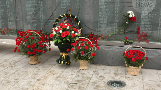 Они почтили память героев минутой молчания, после чего возложили к стеле цветы.