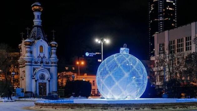 Меценаты подарили Екатеринбургу пятиметровый новогодний шар