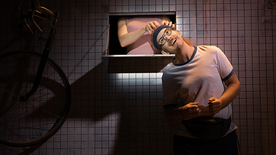 Вместо декораций — словно лист тетрадки в клеточку. Наравне с пешеходом, который внешне напоминает персонажа юмористических скетчей Антона Лапенко, главный герой этой истории — следователь. Каждый из второстепенных персонажей, которые живут в соседних задачках, по-своему трагикомичен. Сразу несколько гротесковых образов тут у актрисы Риты Крон: она и мать пропавшего велосипедиста, и диспетчер, и даже проститутка. Правда, непонятно, как эта героиня оказалась на страницах учебника. Но самая заметная — ее же женщина-мечта, продолжает Рита Крон: