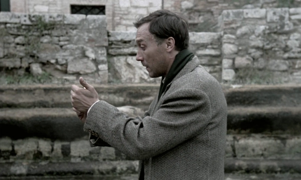 Обморок последнего в финальной сцене — неподдельная реакция актера. Напряжения добавляет взгляд камеры, которая медленно приближается к герою. Чтобы добиться эффекта тревожного сближения, Тарковский попросил техническую команду построить специальные рельсы, по которым катился оператор.