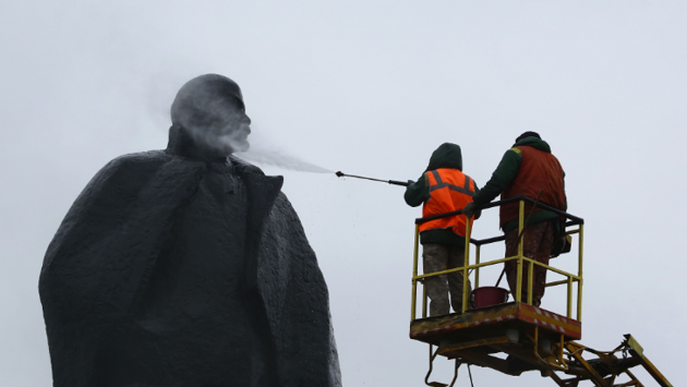 Памятник Ленину отмыли от грязи в Чистый четверг в Новосибирске
