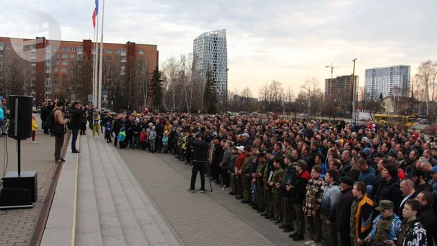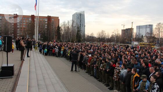 Ижевск. Удмуртия. У здания администрации Ижевска прошла первая основная репетиция хора отцов и сыновей. Вечером вторника, 26 апреля, здесь собрались активисты общественной организации Совет отцов Удмуртии со своими сыновьями.