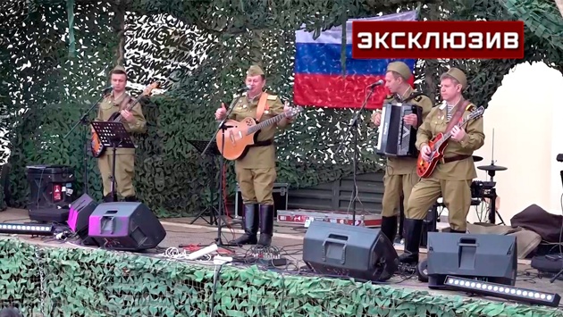 Российские военнослужащие провели трехчасовой концерт в городе Купянск Харьковской области прямо у входа в железнодорожный вокзал. Несмотря на пасмурную и дождливую погоду, люди, которые на протяжении трех месяцев не имели связи с внешним миром и возможности выйти в интернет, все же пришли на главную площадь рядом с железнодорожным вокзалом, чтобы услышать первый за долгое время после освобождения концерт.