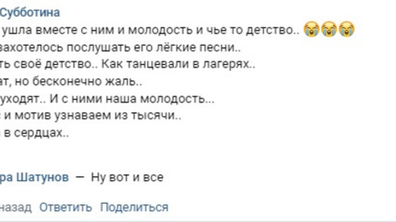 Пермяки в городских пабликах в социальной сети «ВКонтакте» прощаются с солистом группы «Ласковый май» Юрием Шатуновым и вспоминают его любимые песни. О его смерти стало известно 23 июня.
