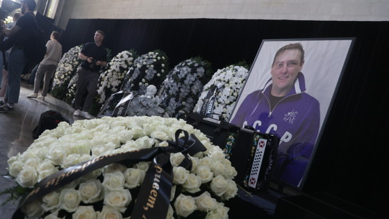 В траурном зале Троекуровского кладбища был замечен лишь юный вокалист, которого почти все СМИ приняли за 15-летнего сына музыканта