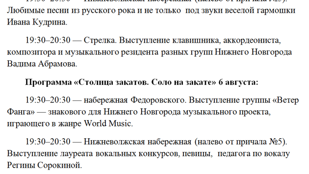 Опубликована программа нижегородского фестиваля «Столица закатов» на 5-7 августа