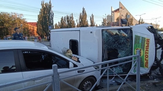 В Омске в результате серьезного ДТП перевернулась маршрутка