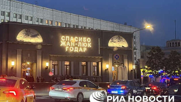 На фасаде московского кинотеатра "Художественный" простились с режиссером Годаром