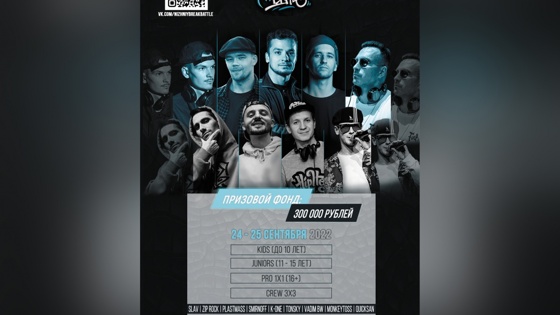 Днем гостей фестиваля ждут соревнования между профессиональными танцорам брейк-данса и любителями в разных категориях от 5 лет, выступления диджеев и фудкорт. А в 23:00 начнется вечеринка (18+), которая продлится до 7:00. Посетители услышат музыкантов и диджеев ACROBAT, OID, SAMIR KULIEV, TOPCHY, TOPCHY, а хедлайнером станет ДЕЛЬФИН, который представит проект «Механический пес». КРоме того, на сцену выйдет танцевальная фрик-шоу группа ФРИК-ШОУ *PEASOK*.