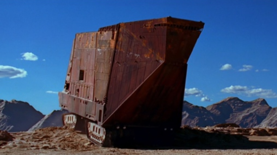 Песчаный краулер, впервые появившийся в качестве транспортного средства расы джава в фильме «Звездные войны. Эпизод IV: Новая надежда» в 1977 году, чуть было не стал тем самым «яблоком раздора» и не спровоцировал войну Ливии с Тунисом. О том, как это произошло, читайте в материале «Рамблера». Гигантскую машину на гусеничной тяге, длина которой составляла около 40 метров, а высота – в районе 20 метров, создавали по подобию марсохода, разработанного НАСА. В ходе доработок во время создания краулер совершенствовали. Готовую декорацию привезли из Англии в Тунис, к месту съемок, где команде декораторов предстояло его собрать и переместить в пустыню. На это ушло четыре дня.