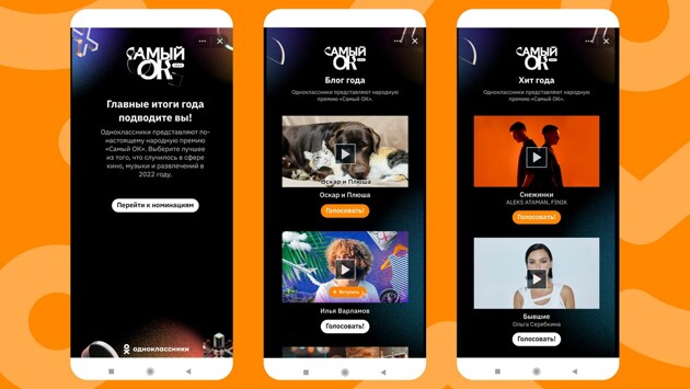 Голосование за номинантов пятой премии «Самый ОК» стартовало 5 декабря. Пользователи соцсети могут отдать свой голос за то, что им полюбилось в 2022 году. Завершится голосование 15 декабря в 12:00 мск, победителей объявят в специальном выпуске собственного онлайн-шоу «ОК на связи!».