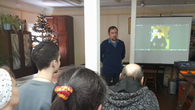 Показ киноленты провел катехизатор храма Михаил Погорелов. В своем вступительном слове он рассказал о жизни и служении архимандрита Дионисия Каламбокаса, который является строителем и духовным руководителем четырёх обителей в Греции. Зрители смогли узнать о традициях духовного наставничества, старчества и особенностях современного монашества на примере духовной монашеской семьи, руководимой старцем.