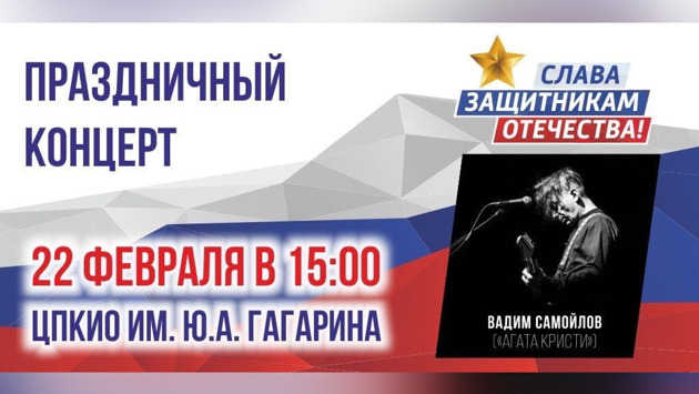 Жителей и гостей Челябинска с Днем защитника Отечества поздравит лидер легендарной рок-группы «Агата Кристи» Вадим Самойлов. Концерт с участием популярного музыканта состоится накануне праздника, 22 февраля, в 15 часов в парке имени Гагарина. Вход свободный для всех желающих. Как сообщил сегодня, 20 февраля, на аппаратном совещании в городской администрации заместитель главы Челябинска по социальному развитию Сергей Авдеев, концерт под названием «Слава защитникам Отечества» организует Общероссийский Народный фронт (региональное отделение). Жители областного центра радуются предстоящему событию, но при этом переживают, что выступать Вадим Самойлов будет в будний день, в рабочее время, и что насладиться концертом смогут не все желающие. Говоря о грядущих праздниках на «аппаратке» в мэрии, Сергей Авдеев также анонсировал народные гуляния «Широкая масленица», которые состоятся в Челябинске 26 февраля – в горсаду имени Пушкина, парке имени Гагарина, Саду Победы и в сквере Богдана Хмельницкого в Металлургическом районе.
