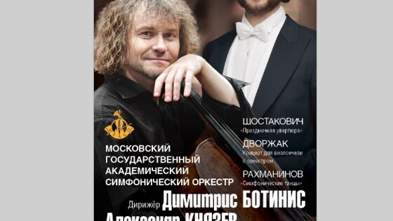 Дирижер – художественный руководитель и главный дирижер Новосибирского академического симфонического оркестра, лауреат премии Президента Российской Федерации для молодых деятелей культуры 2020 года Димитрис Ботинис. Солист – Народный артист РФ, солист Московской государственной филармонии Александр Князев. Ведущий концерта – музыкальный педагог, критик, радио- и телеведущий Артём Варгафтик. В программе: Дмитрий Шостакович – Праздничная увертюра; Антонин Дворжак – Концерт для виолончели с оркестром; Сергей Рахманинов – "Симфонические танцы". МГАСО в Концертном зале имени Чайковского. Каждое из этих произведений стало знаковым в истории МГАСО, равно как и весь репертуар их создателей. Димитрис Ботинис: "Мы вас приглашаем 5 апреля на очень знаковый юбилейный концерт МГАСО, посвященный 80-летию оркестра. В то же время это – концерт, который частично посвящен и 150-летнему юбилею Сергея Васильевича Рахманинова. МГАСО для меня в первую очередь – оркестр, к которому, когда приходишь на репетицию, есть ощущение, что, если не все полностью готово, то очень многое уже сделано "за кадром", очень многое уже сделано до прихода дирижера. Это всегда очень подкупает, потому что ты понимаешь, что музыканты подготовлены. Это происходит даже с довольно сложными произведениями. На первой репетиции, когда чувствуется вот эта подготовка, это – та основа, на которую можно опереться, чтобы заниматься музыкой. У МГАСО эта подготовленность – очень ценное качество. Димитрис Ботинис. "Симфонические танцы" Сергея Рахманинова – это произведение, которое со мной с довольно юного возраста. Это – первое симфоническое произведение Рахманинова, которым я дирижировал. Это было еще во времена моей учебы в консерватории, на третьем курсе. Потом я дирижировал "Симфоническими танцами" за рубежом, и очень запомнилось выступление с этим произведением на Первом Всероссийском музыкальном конкурсе в 2011 г. Я часто возвращаюсь к этой партитуре, которая со мной на протяжении уже многих лет, и всегда очень рад этому, потому что это – очень значимое произведение в творчестве Рахманинова и вообще во всей симфонической музыке в целом. 1 апреля в день 150-летия Рахманинова я буду дирижировать "Симфонические танцы" с Новосибирским академическим симфоническим оркестром, а 5 апреля мы его представим на юбилее МГАСО в Концертном зале им.П.И.Чайковского. Я уверен, что это будет очень интересно! Будем очень рады вас видеть! До скорой встречи 5 апреля!" Александр Князев: "Концерт Дворжака – самый популярный концерт в виолончельном репертуаре. Виолончельный репертуар, к сожалению, не такой уж широкий. Концерт Дворжака – жемчужина, я исполняю его всю жизнь. Как я его выучил? Я учился в школе им. Гнесиных, в 10-м классе выступал на конкурсе им. Чайковского. Сразу после конкурса раздается звонок, и меня приглашают сыграть концерт Дворжака с оркестром ГСО на телевидении, с прямой трансляцией концерта ... через пять дней. За пять дней выучить такой труднейший концерт абсолютно нереально. Я отказался и позвонил педагогу, который сказал, что это неимоверный риск и такие авантюры допускать нельзя. После этого я сделал все наоборот: перезвонил организаторам и сказал, что буду играть. Это было серьезное испытание, потому что пять дней - очень маленький срок. Мне было только 17 лет. Я занимался кругло