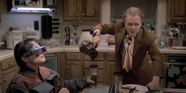 В картине "Назад в будущее – 2" 1989 года зрители увидели сына Макфлая, который ужинал в смарт-очках с дополненной реальностью. Внутри стекол очков персонажа находились дисплеи, а сами очки выполняли функции смартфона.