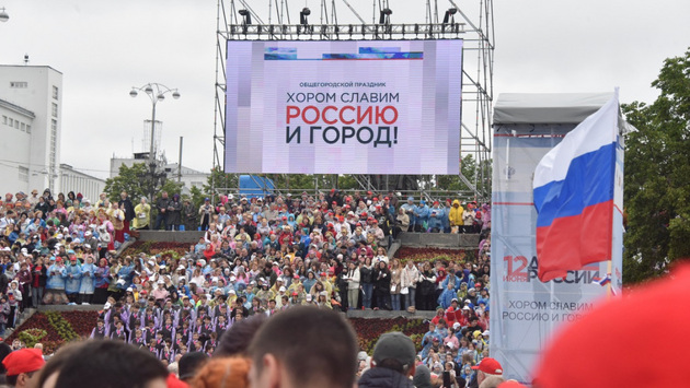 «Ежегодная акция „Хором славим Россию и город!“ в День России пройдет в Историческом сквере Екатеринбурга. Сводный тысячный хор музыкальных коллективов 12 июня вместе с тысячами уральцев под аккомпанемент духового оркестра исполнят известные всем с детства, популярные песни», — говорится в анонсе мероприятия.