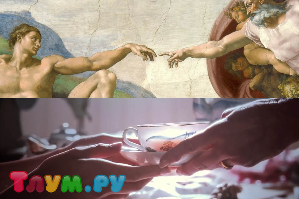 Когда исполнительницу главной роли, Марго Робби, спросили, какая пасхалка в «Барби» является её любимой, она упомянула картину «Сотворение Адама» Микеланджело (она была создана в 1511 году). Это возвращает нас к моменту встречи Барби с Рут Хендлер: в сцене, где создательница протягивает главной героине чашку чая, их руки соприкасаются почти так же, как на картине. Как говорила режиссёрка фильма, Грета Гервиг, это была пасхалка, которую никто не должен был заметить; зато она сама знала, что такая деталь существует.