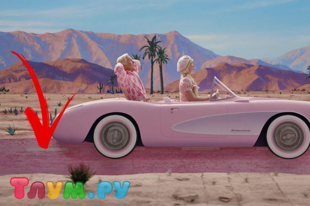 В своё время «Волшебник страны Оз» стал культовым фильмом, поэтому такие любопытные отсылки на него — не редкость. Эту пасхалку мы видели ещё в трейлере: Барби едет по Барбиленду в своей роскошной машине и проезжает мимо кинотеатра, в котором показывают «Волшебника страны Оз» 1939 года. Но это ещё не всё — на самой главной героине надето розовое платье в клеточку, отсылающее нас к фирменному наряду Дороти, только у неё платье белое в синюю клетку.