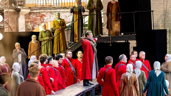 Огромную сцену привезли заранее из Москвы, монтировали под присмотром режиссера Александра Тителя, художника Владимира Арефьева, главного хормейстера Московского музыкального театра имени Станиславского и Немировича-Данченко Станислава Лыкова. Спектакль в 2016 году получил "Золотую маску". Но никогда не игрался на таком вот открытом пространстве.