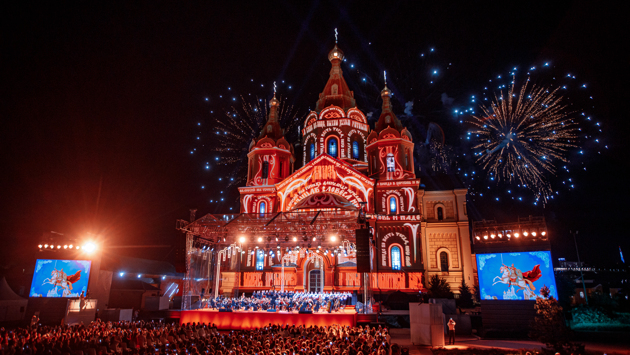 Ежегодный музыкальный фестиваль «Великая Русь» состоится в Нижнем Новгороде 12 августа у кафедрального собора святого благоверного князя Александра Невского. Сегодня, 8 августа, открылась регистрация на стоячие места в сектор со свободным входом. Количество мест ограничено. Желающим необходимо зарегистрироваться по ссылке: https://nn-afisha.ru/events/137. Кроме того, прямая трансляция фестиваля «Великая Русь» будет вестись в официальном сообществе «Нижегородская область» и «Нижний 800» в социальной сети «ВКонтакте», на телеканалах «Нижний Новгород 24», ННТВ, «Волга», «Волга 24», а также на сайте информационного агентства «Время Н». Начало трансляции – в 21:00. Фестиваль будет посвящен культурным и историческим особенностям нашей страны, её героям. Тема фестиваля этого года — «Путешествие нижегородского купца Терентия». Зрителей ожидает музыкальная программа, которая будет сопровождаться пиротехническими эффектами и архитектурной подсветкой храма. Напомним, в этом году в фестивале «Великая Русь» примут участие оркестр, хор и солисты Нижегородского государственного театра оперы и балета имени А.С. Пушкина: Венера Гимадиева (сопрано); Илья Ткач (баритон); Карина Хэрунц (меццо-сопрано); Михаил Гужов (бас), а также Иван Гынгазов (тенор) – солист театра «Геликон-опера» и Мариинского театра. Дирижером выступит Боян Суджич (Сербия) – главный дирижёр Симфонического оркестра радио и телевидения Сербии. Основой музыкальной программы станут шедевры великих русских композиторов XIX-XX веков и народные песни. Прозвучат произведения М.И. Глинки, А.П. Бородина, П.И. Чайковского, Н.А. Римского-Корсакова, А.И. Хачатуряна, а также Дж. Верди и других авторов. Режиссером фестиваля в этом году стала Ирина Гаудасинская – лауреат международных конкурсов, член Союза театральных деятелей, художественный руководитель академии «Авансцена», президент благотворительного фонда «Арт-Петербург». С помощью видеоэкранов и проекций на собор (мэппинга) каждый номер будет сопровождаться визуальными ассоциациями на темы российской истории и культуры, исторических героев. В качестве материала будут использованы произведения русской живописи, изображения архитектурных объектов, планы Нижнего Новгорода, а также изображения уникальных природных мест России.