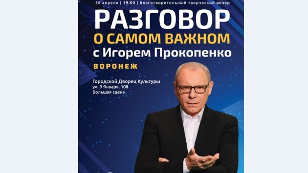Формат личных встреч автора и ведущего еженедельных документально-публицистических телевизионных программ объединит и укрепит в сознании граждан уважительное отношение к России, к ее истории, а также повысит патриотическое воспитание молодежи в духе любви к Отечеству. Главная цель проведения благотворительных творческих вечеров "Разговор о самом важном" с Игорем Прокопенко – общение с жителями нашей страны на тему того, что происходит на Украине и на международной арене, обсуждение причин конфликта, исторических параллелей, вариантов завершения ситуации. Проведение личных встреч и творческих дискуссий в период проведения специальной военной операции необходимо для объяснения исторических предпосылок, а также разъяснения причин и начала СВО. Необходимо оказать поддержку зрителю, чтобы он получил доступ к реальной информации. В рамках проекта жители Воронежа смогут лично задать вопросы автору, принять участие в автограф-сессии, а также увидеть и оценить специально созданный, документальный фильм-расследование.