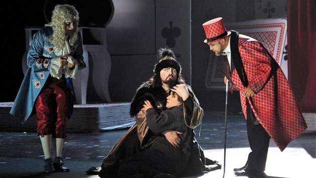 При этом спектакль решен в кинематографической, даже клиповой эстетике. На сцене с калейдоскопической скоростью меняется "картинка", для чего в совсем не длинной опере происходит более десятка перемен декораций. А в облике почти каждого героя угадывается какой-то известный "прототип" из наших самых любимых советских фильмов. Так, например, Король Треф - копия Ивана Васильевича...