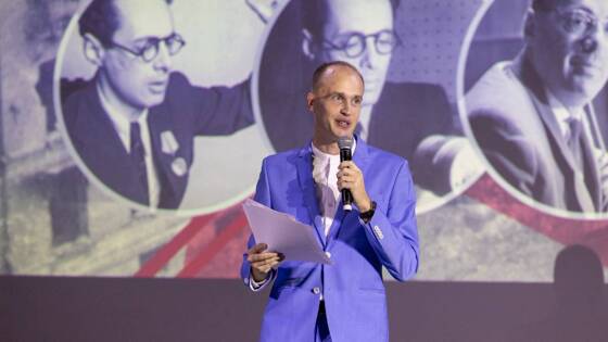 Встречу организовали группа компаний «Наносемантика» и Музей Победы при поддержке правнука диктора Артура Левитана-Сударикова.Юрий Борисович Левитан — диктор Всесоюзного радио, народный артист СССР. Родился 2 октября 1914 года в городе Владимире. В годы Великой Отечественной войны ежедневно зачитывал новостные сводки Совинформбюро.