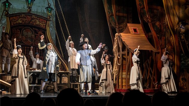 Инициатор всероссийского форума "ВИДЕТЬ МУЗЫКУ" – Ассоциация Музыкальных Театров при финансовой поддержке Министерства культуры Российской Федерации. Проект реализуется при поддержке Президентского фонда культурных инициатив. Новый мюзикл "Арап Петра Великого", мировая премьера которого состоялась в июне 2023 года, создан специально для оренбургского театра музкомедии содружеством известного либреттиста Евгения Муравьёва (Москва) и композитора-петербуржца Владимира Баскина. Режиссером-постановщиком и хореографом выступил заслуженный деятель искусств РФ Николай Андросов (Москва), который уже неоднократно сотрудничал с оренбуржцами до этого. Неоконченный роман Александра Сергеевича Пушкина "Арап Петра Великого", где главным героем является дед поэта по материнской линии Ибрагим Ганнибал (арап Петра Великого) лёг в основу сюжета. Вся постановка "Арапа" заточена под лёгкий жанр. Оперетта, водевиль, мюзикл с компонентами фолк-рока переливаются своими гранями в безудержном возбуждении сценического действа. На заре строительства Российской империи и её могущественного флота всё поднято на дыбы. Оркестровая, вокальная, танцевальная составляющие крепко стянуты морским узлом в общей партитуре спектакля. Всё пляшет и поёт, поёт и пляшет. Балет сопровождает все номера наравне с оркестром. В интродукции Царь Пётр солирует, как и ожидалось, об "окне" в Европу, яростно всаживая топор в топчан. В центре мизансцены - фигура Петра, который из потешных забав вырос в реформатора. Детство будущего императора навеяло идею сценографического оформления. Придумка Григория и Акинфа Беловых - сложносочинённое ярко-расписное пространство в лубочном стиле со множеством элементов. Потешные всадники а ля преображенцы красуются на занавесе. Действующие лица будто помещены в театр-сундучок с игрушечными декорациями, деревянными лошадками, где на заднике сцены, как в камере-обскура, меняются картинки. А внутренняя организация сцены - палубный пандус, лестницы-трапы, канаты - прямо указывают на корабельное пространство. Художник по свету Валентин Бакоян интересно наполнил настроением каждый эпизод в таком затейливом сценическом мире. Особенно атмосферной была лирическая сцена Наташи и Ибрагима на фоне звёздного неба в их приятном на слух вальсообразном дуэте. Екатерина Мирошниченко фантазировала костюмы в историческом ключе, воплощая идею очень подробно. События разворачиваются на излёте рождения петровской России. Художник оригинально подчеркнула различие двух костюмов Петра Великого, отсылающих к его двойственной натуре. Когда царь приходит в дом боярской невесты сватать своего крестника Ибрагима Петровича, то меняет европейский наряд на русский кафтан. Музыка по-своему диктует эту смену царского имиджа. Композитор в момент сватовства использует фольклорную тему "Ах, ты Порушка-Параня, ты за что любишь Ивана?" и "наряжает" мелодию в рок-одежды. Фолк-рок тяжелеет битом ударной установки, а участники массовой сцены имитируют свадебный обряд - торг купца-жениха и товара-невесты. Шумная сцена рождественских колядок также решена в подобном стиле, когда уличная толпа ряженых врывается в дом Арапа Ганнибала. Одна из масок вопиёт в экстазе рок-импровизации. Публику это увлекло, тем более, что оркестр под управлением маэстро Валерия Попова б